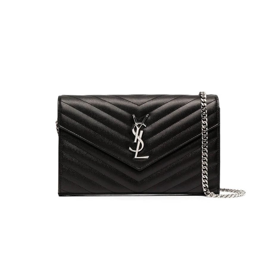 Saint Laurent Chain-strap YSL-plaque grained-leather wallet