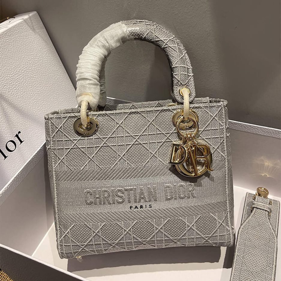 The DIOR MEDIUM LADY D-LITE BAG is an iconic, timeless luxury accessory from Christian Dior’s legendary collection, blending exquisite French craftsmanship with modern everyday elegance. Expertly crafted in a classic light gray cannage quilting design, this structured medium bag features the signature Dior charms, adjustable shoulder strap, and spacious interior, making it perfect for daily commuting, travel, and stylish everyday use.