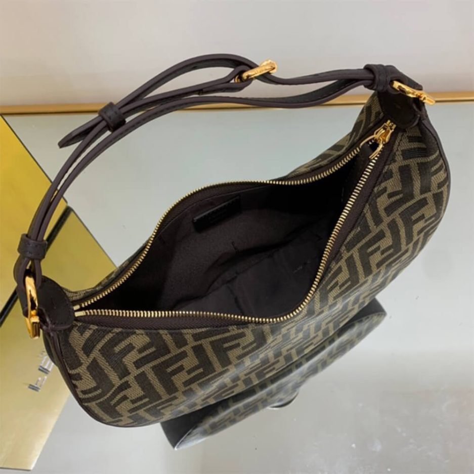 The Fendigraphy Small is an iconic, timeless luxury accessory from Fendi’s legendary collection, blending Italian craftsmanship with modern everyday versatility. Expertly crafted from premium Zucca canvas with smooth leather trim in a classic brown finish, this structured small hobo bag features the signature FF monogram motif, distinctive crescent silhouette, and a detachable adjustable shoulder strap, making it perfect for daily commuting, casual outings, and stylish everyday use.