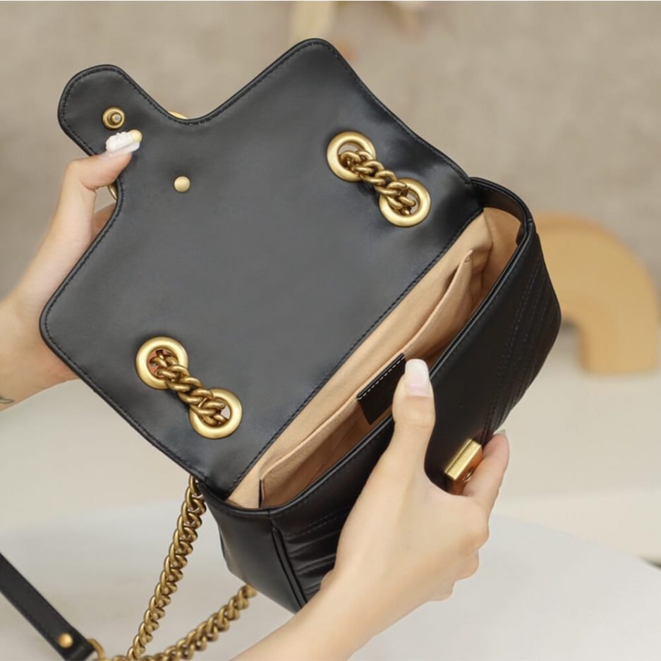The GG MARMONT MINI SHOULDER BAG is an iconic, timeless luxury accessory from Gucci’s legendary collection, blending Italian craftsmanship with modern everyday versatility. Showcasing premium quilted leather in a sleek black finish, this structured mini shoulder bag features the iconic Double G hardware, polished gold-tone hardware, and a detachable adjustable chain shoulder strap, making it perfect for daily commuting, casual outings, and stylish everyday use.