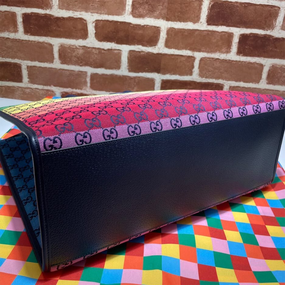 The GG Multicolour large tote bag is an iconic, timeless luxury accessory from Gucci’s legendary collection, blending Italian craftsmanship with modern everyday versatility. Showcasing the signature GG monogram canvas in a vibrant gradient multicolour design, this structured large tote features a detachable adjustable shoulder strap, a spacious interior, and the iconic Gucci web detail, making it perfect for daily commuting, business trips, and stylish everyday use.