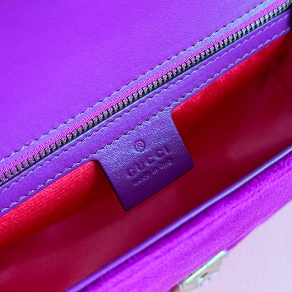 The GG Velvet Small Marmont shoulder bag is an iconic, timeless luxury accessory from Gucci’s legendary collection, blending Italian craftsmanship with modern everyday versatility. Showcasing premium quilted velvet in a rich purple finish, this structured small shoulder bag features the iconic Double G hardware, polished gold-tone hardware, and a detachable adjustable chain shoulder strap, making it perfect for daily commuting, casual outings, and stylish everyday use.