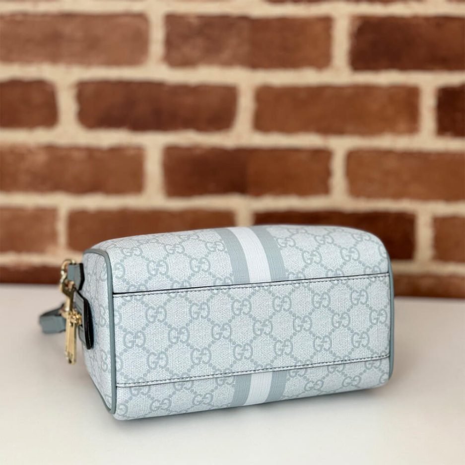 The GUCCI Ophidia mini top handle bag is an iconic, timeless luxury accessory from Gucci’s legendary collection, blending Italian craftsmanship with modern everyday versatility. Showcasing premium GG Supreme canvas with leather trim in a soft sky blue finish, this structured mini top handle bag features the iconic Webby stripe, polished gold-tone hardware, and a detachable adjustable shoulder strap, making it perfect for daily commuting, casual outings, and stylish everyday use.