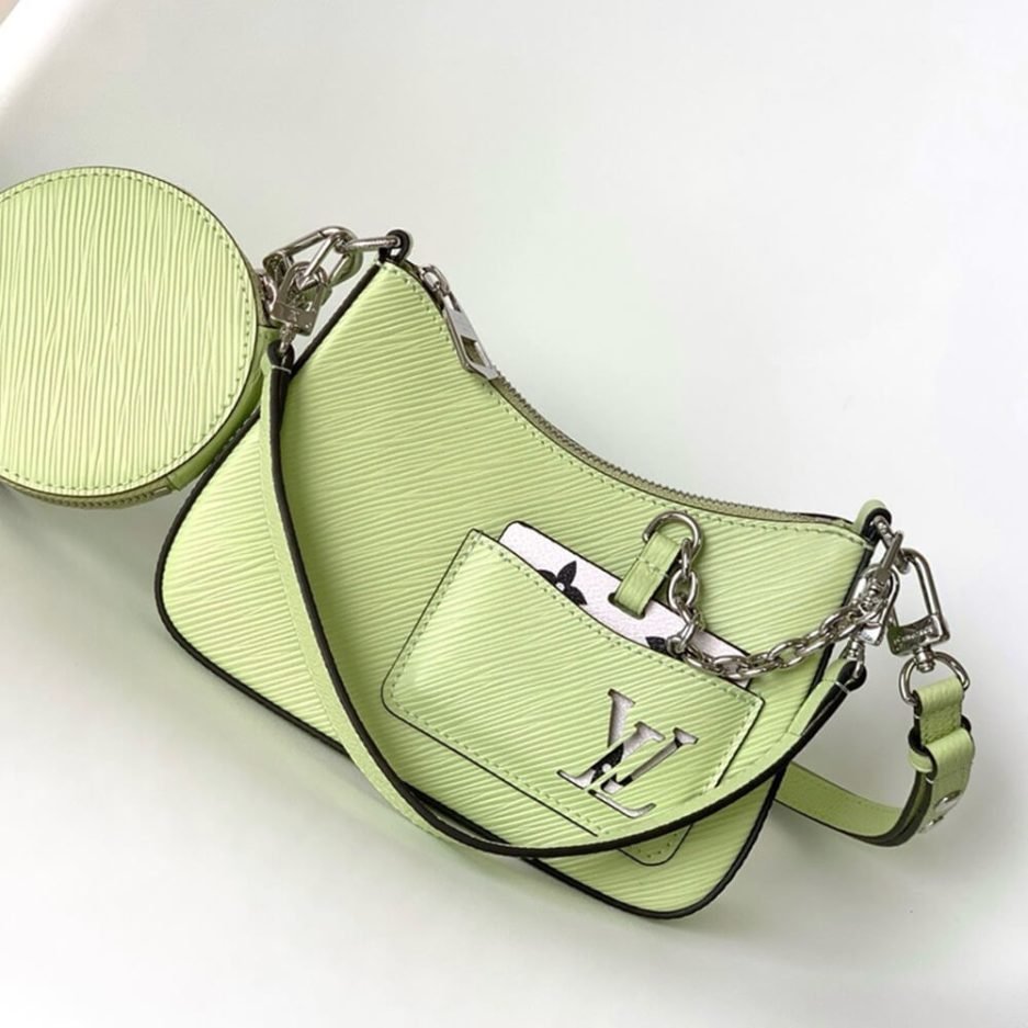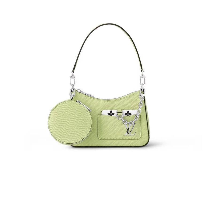 Elevate your luxury collection with the LV Marellini handbag, a charming mini iteration of Louis Vuitton’s sporty-chic Marelle silhouette. Crafted from the House’s iconic Epi grained cowhide leather, this versatile piece features a playful yet functional design, including a removable zipped round coin purse, a front flat pocket, and a detachable mirror hooked to the bag via a silver-finish chain. Equipped with an adjustable, detachable shoulder strap, it offers multiple styling options as a shoulder bag, crossbody, or handheld mini bag. Spacious enough to hold a 6.1-inch smartphone, card holder, and daily essentials, it embodies the perfect fusion of LV heritage and modern practicality.