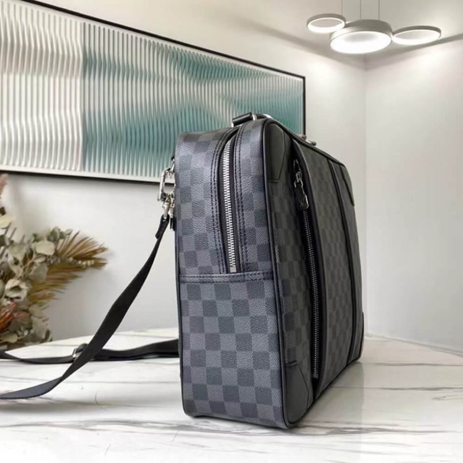 The Louis Vuitton Briefcase Backpack is a sophisticated blend of professional elegance and practical versatility, crafted for the modern urban professional. This sleek, structured piece features a spacious main compartment with a padded laptop sleeve designed to secure your device during commutes or business travel. Multiple interior slip pockets offer organized storage for documents, accessories, and daily essentials, while exterior zip pockets provide quick access to small items. The comfortable, adjustable shoulder straps ensure effortless wearability, and the iconic LV Damier Graphite pattern adds a timeless, luxurious touch. Seamlessly transitioning from the office to after-hours engagements, this backpack is the ultimate statement of refined functionality and high-fashion style.