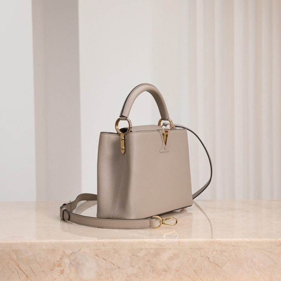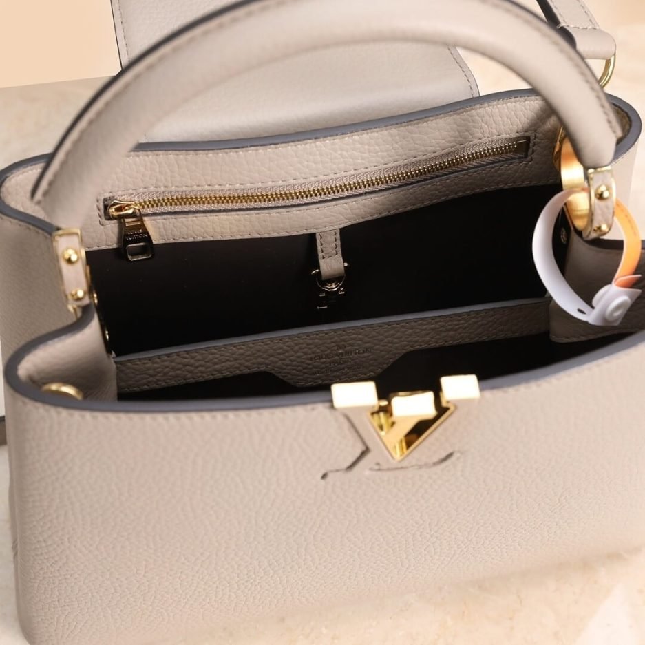 The LV Capucines MM is a pinnacle of modern luxury, crafted to embody timeless elegance and meticulous craftsmanship. This sophisticated top-handle bag features a structured, refined silhouette that exudes understated opulence. The spacious interior provides secure storage for daily essentials, while the sleek, polished exterior showcases iconic details like the distinctive LV twist-lock closure and smooth leather trim. Designed for both formal occasions and upscale daily wear, the Capucines MM seamlessly transitions from boardroom meetings to evening galas, making it a definitive statement piece for the discerning woman.