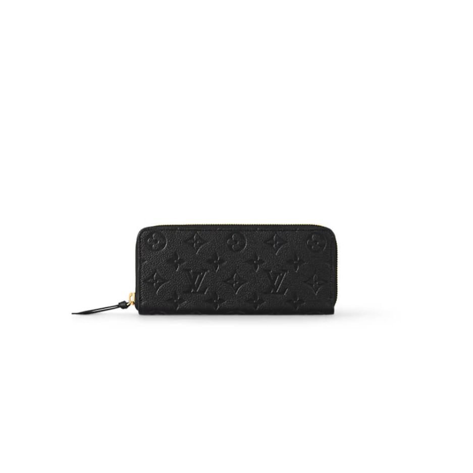 The Louis Vuitton Clémence Wallet is an elegant, compact zip-around design finished in a sleek, all-black hue with the House’s iconic embossed signature pattern. This timeless piece features a secure zip closure, eight credit card slots, a zipped coin pocket, two large gusseted compartments, and two interior flat pockets, delivering the perfect blend of sophisticated style and everyday functionality for organizing your essentials with ease.