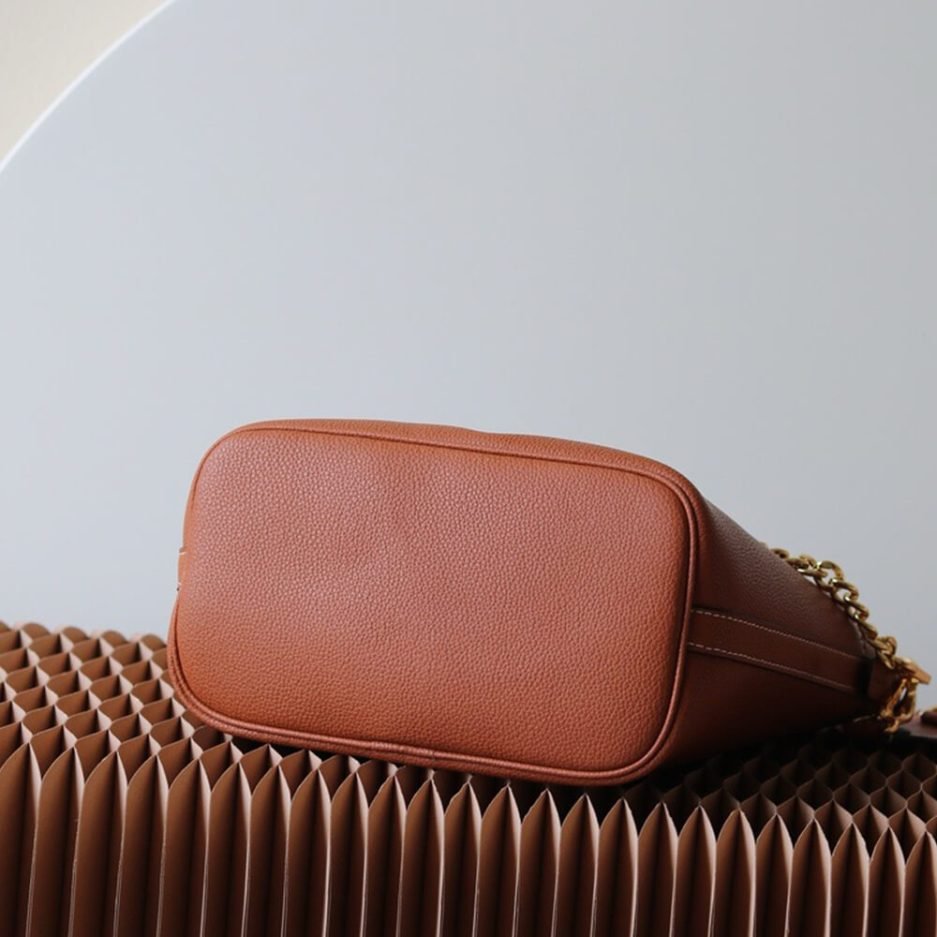 A bold fusion of Louis Vuitton’s iconic heritage and modern street style, the LV Lock and Walk bucket bag is the ultimate statement accessory for the contemporary luxury lover. Crafted from supple grained leather in a warm caramel hue, this structured silhouette features a polished, embossed LV logo at the front, a chunky gold-tone chain detail, an adjustable leather shoulder strap, and a secure drawstring closure.