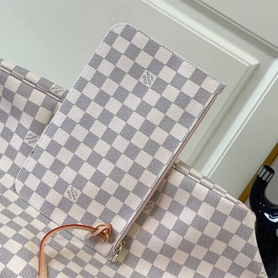 The LV Neverfull GM in Damier Azur is an iconic, spacious tote designed for effortless everyday functionality. It features a relaxed, open silhouette with natural leather shoulder straps, side laces that allow for customizable volume adjustment, and a secure interior compartment. Renowned for its generous capacity and timeless Damier Azur pattern, this versatile piece seamlessly blends classic Louis Vuitton elegance with practical, on-the-go usability, making it the ultimate staple for busy lifestyles.