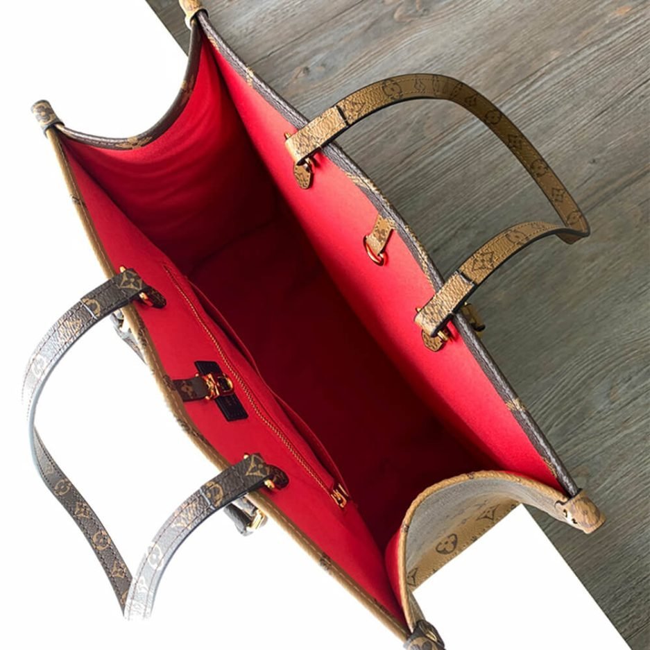 The LV ONTHEGO PM is a structured and timeless tote bag, crafted from classic Monogram coated canvas with rich natural leather trim. It features a rigid rectangular silhouette with sturdy top handles, protective metal feet at the base to preserve its shape, and a detachable, adjustable leather shoulder strap that offers versatile wearing options. The open-top design provides ample space for work essentials, a laptop, or daily essentials, while the iconic Monogram canvas embodies the brand’s enduring heritage, blending understated luxury with modern practicality.
