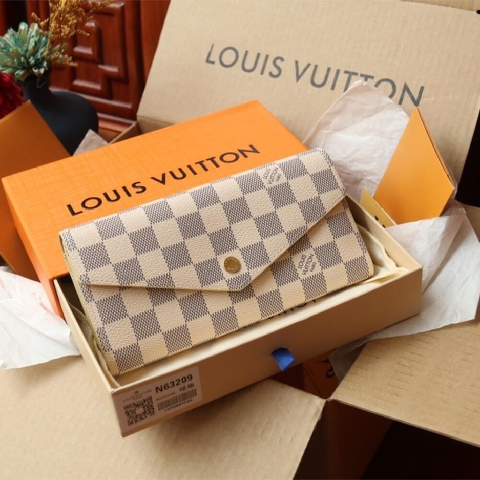 A timeless icon of Louis Vuitton’s leather goods heritage, the LV Sarah Wallet is the epitome of understated luxury and functional elegance. Meticulously crafted from the Maison’s iconic Damier Azur canvas with premium leather trim, this long wallet features a secure snap closure, polished gold-tone hardware, and a thoughtfully organized interior with multiple card slots, bill compartments, and a zippered coin pocket. It seamlessly combines timeless Parisian style with everyday practicality, keeping your essentials organized while elevating every look with signature LV craftsmanship.