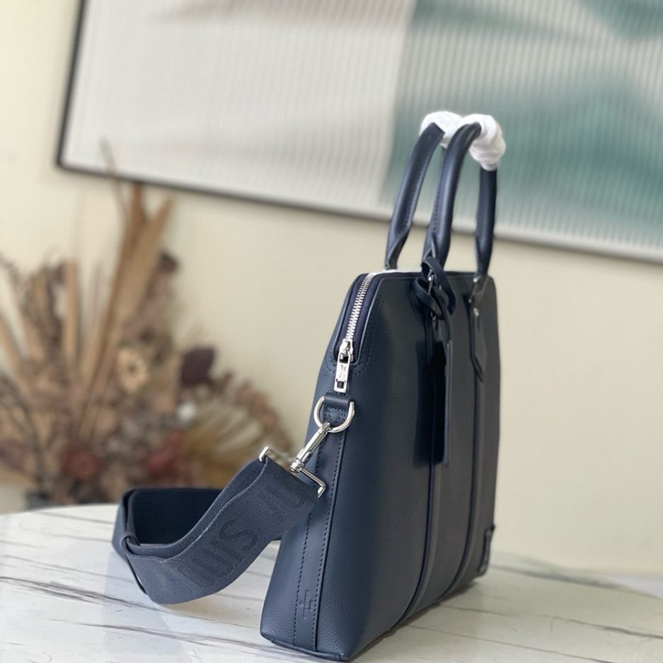 Elevate your professional style with the LV TAKEOFF briefcase, a modern essential designed for the discerning modern professional. Meticulously crafted with Louis Vuitton’s signature savoir-faire, this sleek silhouette features a supple, durable construction, a secure zip closure, and a dedicated padded laptop compartment to keep your tech and documents organized on the go. Equipped with sturdy top handles for handheld carry and a removable, adjustable shoulder strap for versatile shoulder or crossbody wear, it seamlessly transitions from daily commutes to business trips. Finished with subtle metallic LV initials and refined hardware, it embodies understated luxury and timeless functionality, making it the ultimate work companion.
