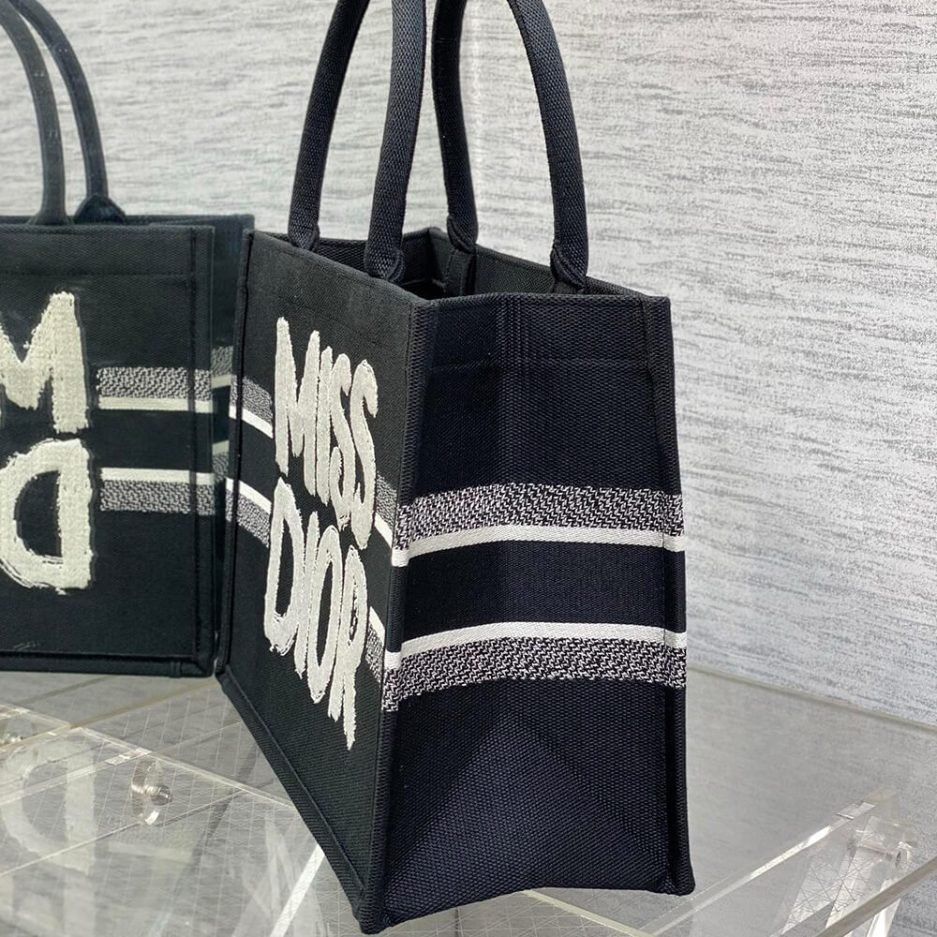 The Medium Dior Book Tote is an iconic, timeless luxury accessory from Christian Dior’s legendary collection, blending exquisite French craftsmanship with modern everyday elegance. Expertly crafted in a black canvas design featuring the bold “MISS DIOR” logo print, this structured tote bag features the signature “CHRISTIAN DIOR” band, top handles, and a detachable shoulder strap, making it perfect for daily commuting, travel, and stylish everyday use.
