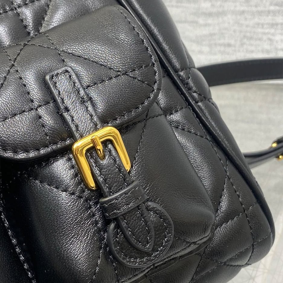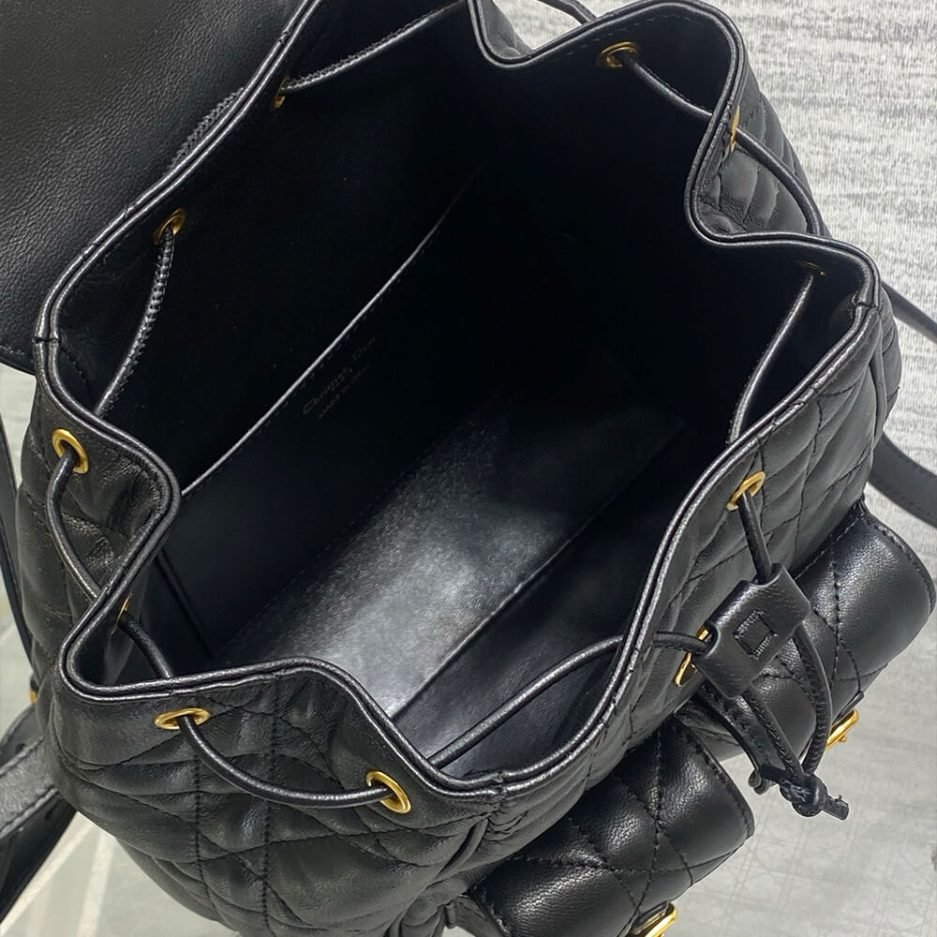 The Medium Dior Caro Backpack is an iconic, timeless luxury accessory from Christian Dior’s legendary collection, blending exquisite French craftsmanship with modern everyday elegance. Expertly crafted in a sleek black lambskin leather design featuring the signature cannage quilting, this structured backpack features front flap pockets with magnetic snap closures, adjustable shoulder straps, and a spacious main compartment, making it perfect for daily commuting, travel, and stylish everyday use.