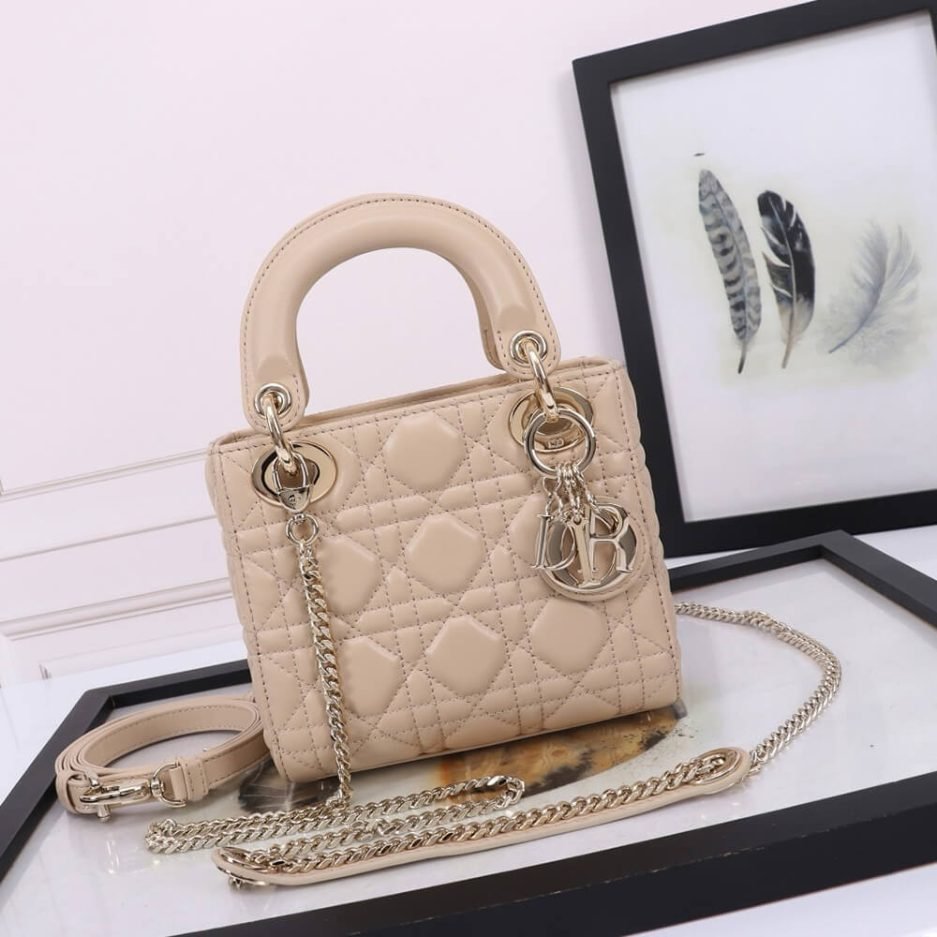 The Mini Lady Dior Bag is an iconic, timeless luxury accessory from Christian Dior’s legendary collection, blending exquisite French craftsmanship with modern everyday elegance. Expertly crafted in a soft beige lambskin leather design featuring the signature cannage quilting, this structured mini bag features the iconic “DIOR” charms, adjustable top handles, and a detachable chain shoulder strap, making it perfect for daily commuting, travel, and stylish everyday use.