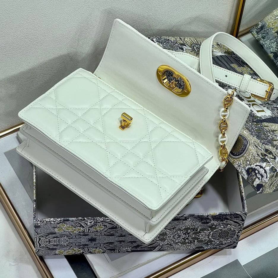 The MISS CARO MINI BAG is an iconic, timeless luxury accessory from Christian Dior’s legendary collection, blending exquisite French craftsmanship with modern everyday elegance. Expertly crafted in a crisp white cannage-quilted smooth leather design, this structured mini flap bag features the signature Dior hardware, adjustable chain-and-leather shoulder strap, and spacious interior, making it perfect for daily commuting, travel, and stylish everyday use.