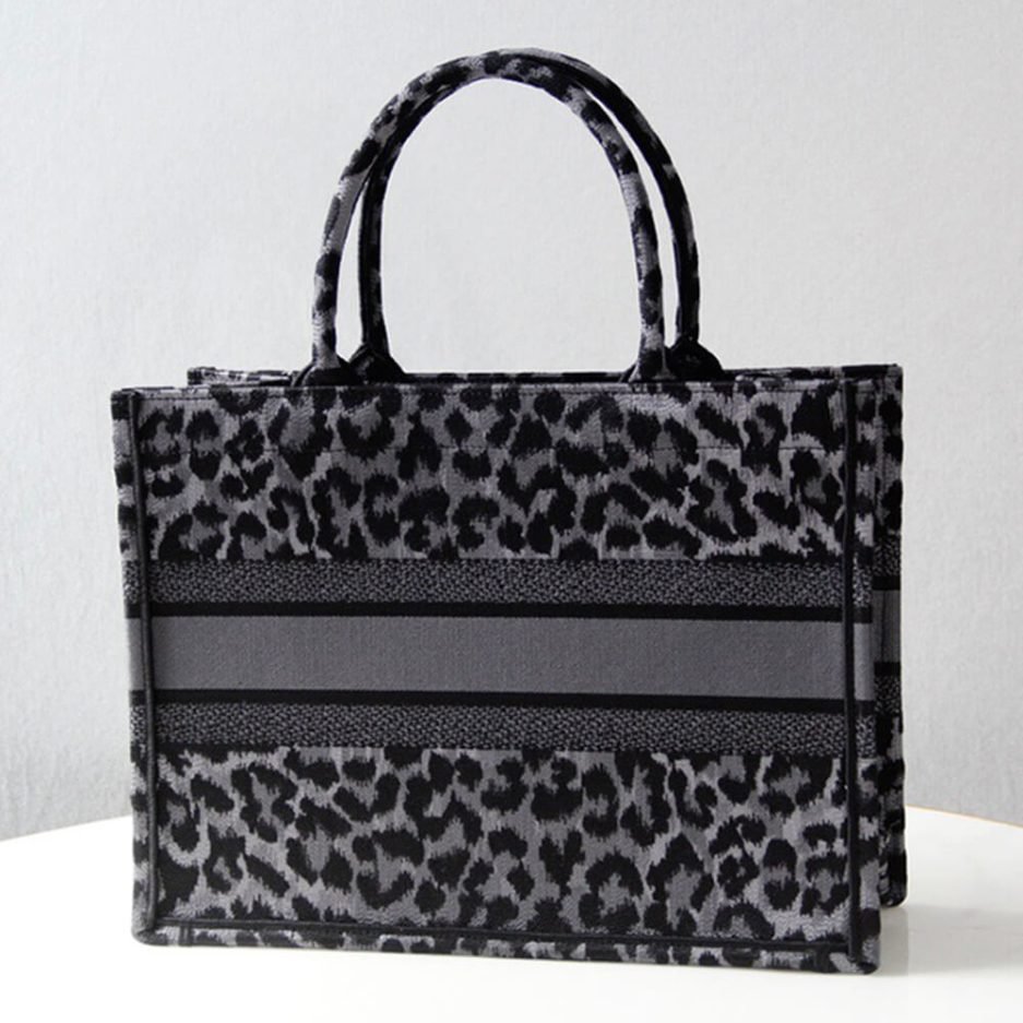 The SMALL DIOR BOOK TOTE is an iconic, timeless luxury accessory from Christian Dior’s legendary collection, blending exquisite French craftsmanship with modern everyday elegance. Expertly crafted in a classic dark leopard print design with a contrasting gray stripe, this structured small tote bag features the signature CHRISTIAN DIOR logo, top handle, and spacious interior, making it perfect for daily commuting, travel, and stylish everyday use.