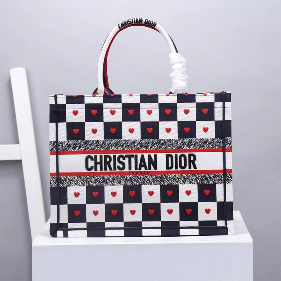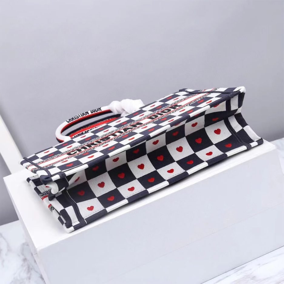 The SMALL DIORAMOUR DIOR BOOK TOTE is an iconic, timeless luxury accessory from Christian Dior’s legendary collection, blending exquisite French craftsmanship with modern everyday elegance. Expertly crafted in a chic black and white checkered design with red heart motifs, this structured small tote bag features the iconic top handles, spacious interior, and classic Dior silhouette, making it perfect for daily commuting, shopping, and stylish everyday use.