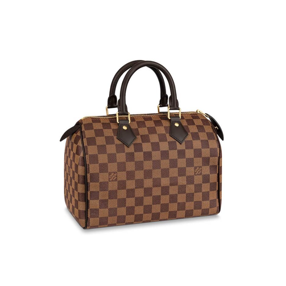 The Louis Vuitton Speedy 25 in Damier Ebene is an iconic, timeless handbag that embodies the spirit of Parisian luxury, designed for effortless everyday elegance. This compact yet spacious silhouette features a roomy main compartment perfect for daily essentials, with a secure top zip closure to keep your belongings safe. The sturdy top handles offer comfortable hand or elbow carry, while the structured shape maintains a polished, refined look at all times. Adorned with the signature Damier Ebene check pattern and finished with polished hardware, the Speedy 25 is a true classic that seamlessly transitions from casual outings to city commutes, a must-have for any luxury bag collection.